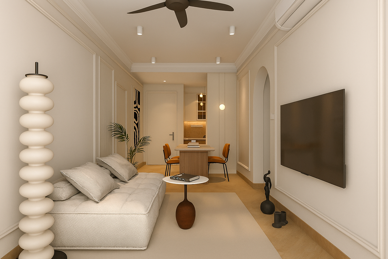 This compact condominium was designed for a single female homeowner seeking a space that balances elegance, individuality, and a subtle artistic flair. Every detail was tailored to her lifestyle — from the bold sculptural elements to the curvaceous architectural lines — creating a cohesive narrative throughout the home.