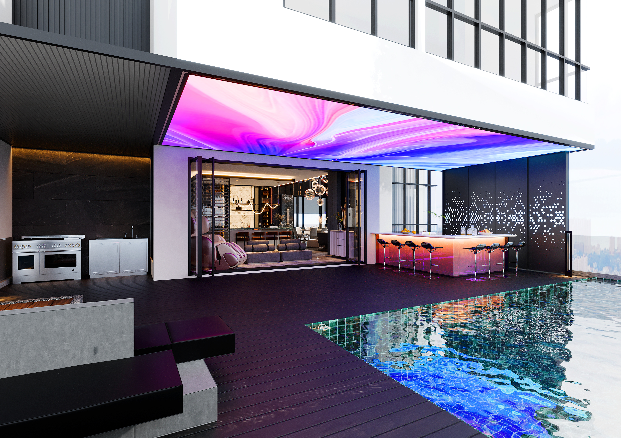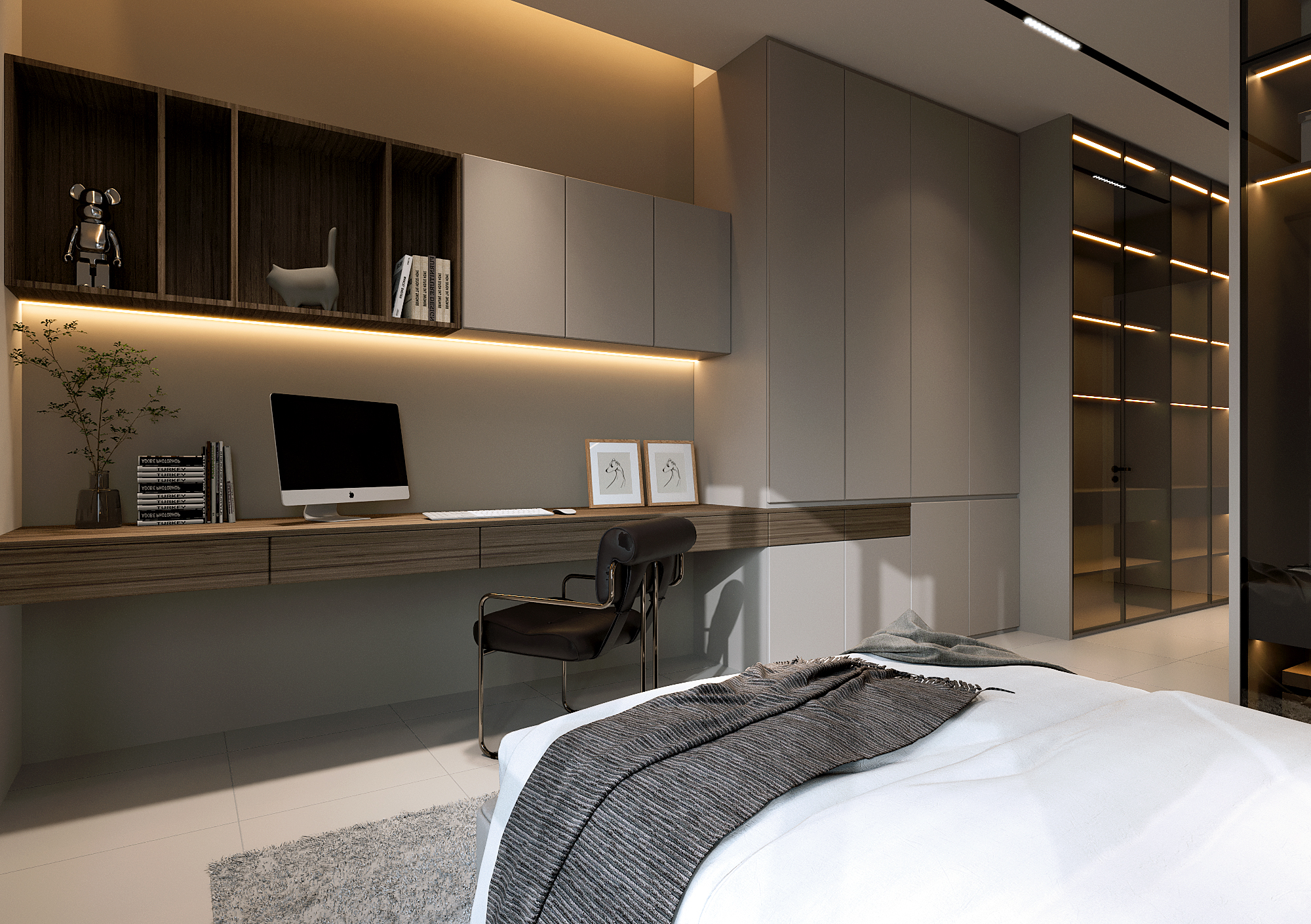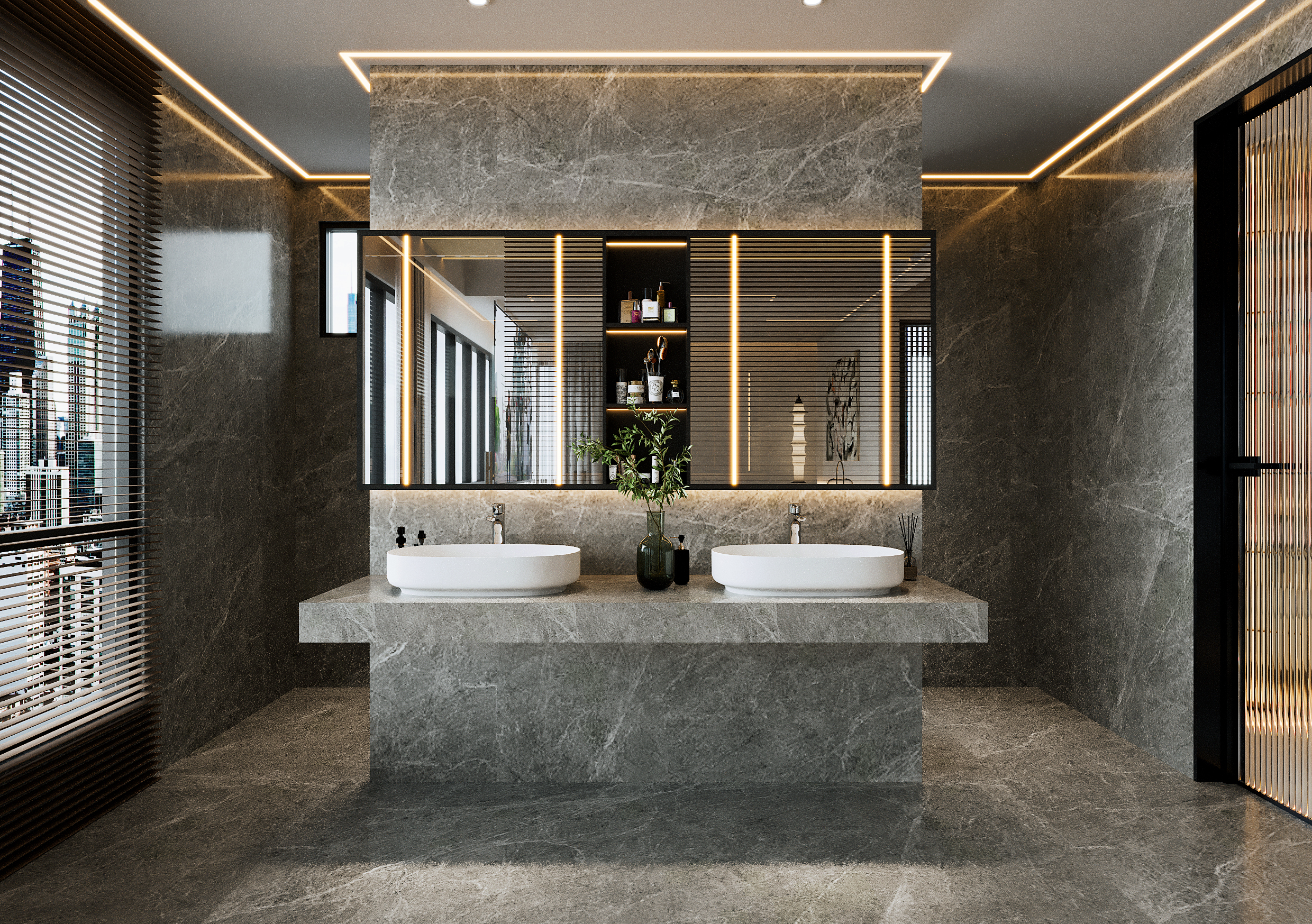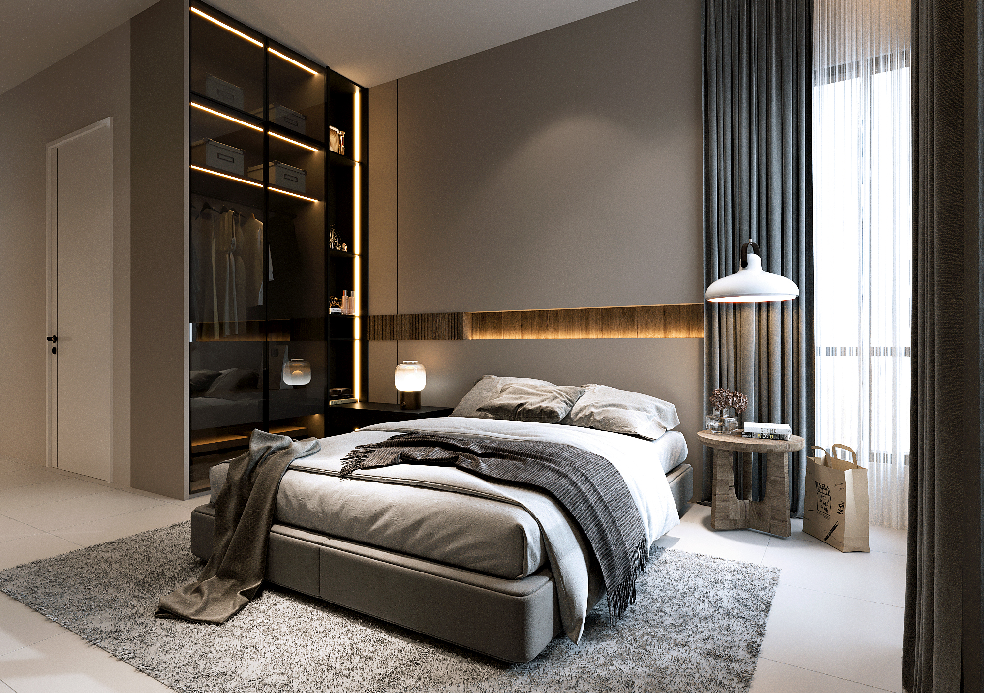 This project embodies modern luxury with a bold contrast of dark tones, warm lighting, and rich textures. The design integrates natural stone, wood, and metallic accents to create an elegant yet comfortable atmosphere. From the double-height living area to the poolside entertainment space, every corner reflects a lifestyle of refinement and ease. The open-plan layout enhances connection between living, dining, and leisure areas, while custom cabinetry and mood lighting bring a sense of tailored sophistication. Private areas such as the bedrooms and walk-in wardrobes are designed for tranquility, balancing functionality with timeless aesthetics. The result is a home that feels both contemporary and deeply personal, defined by contrast, texture, and light.