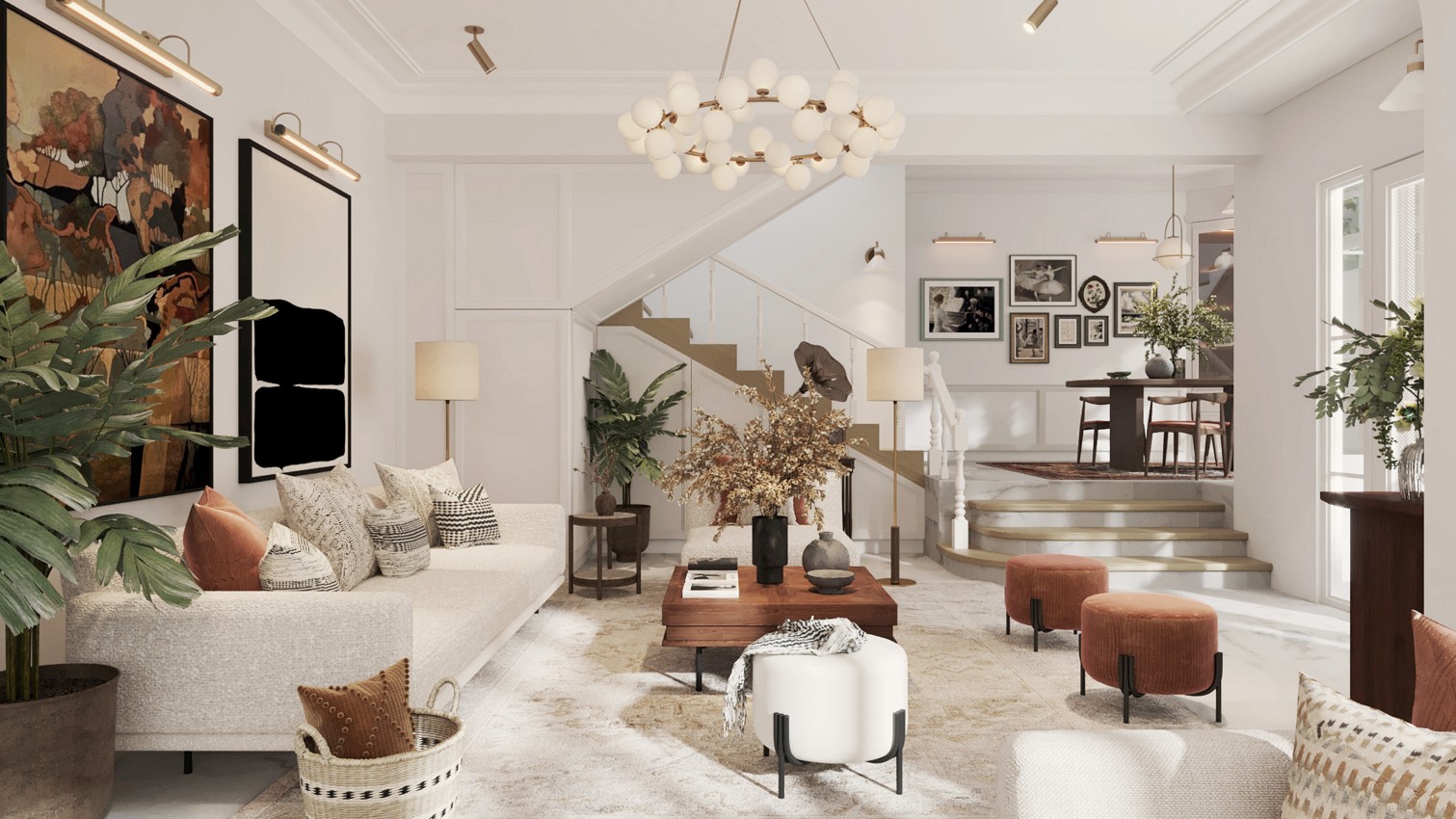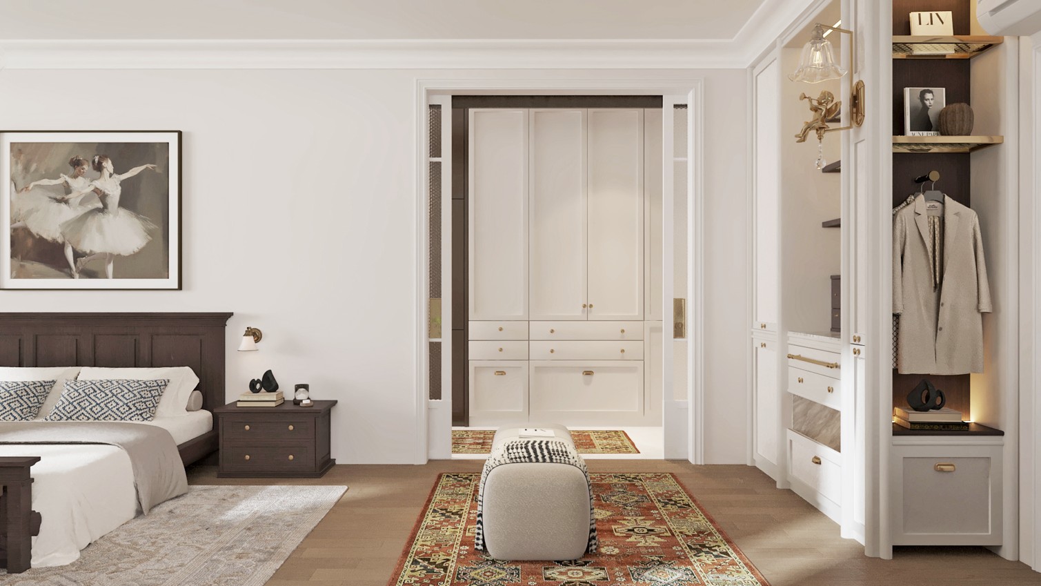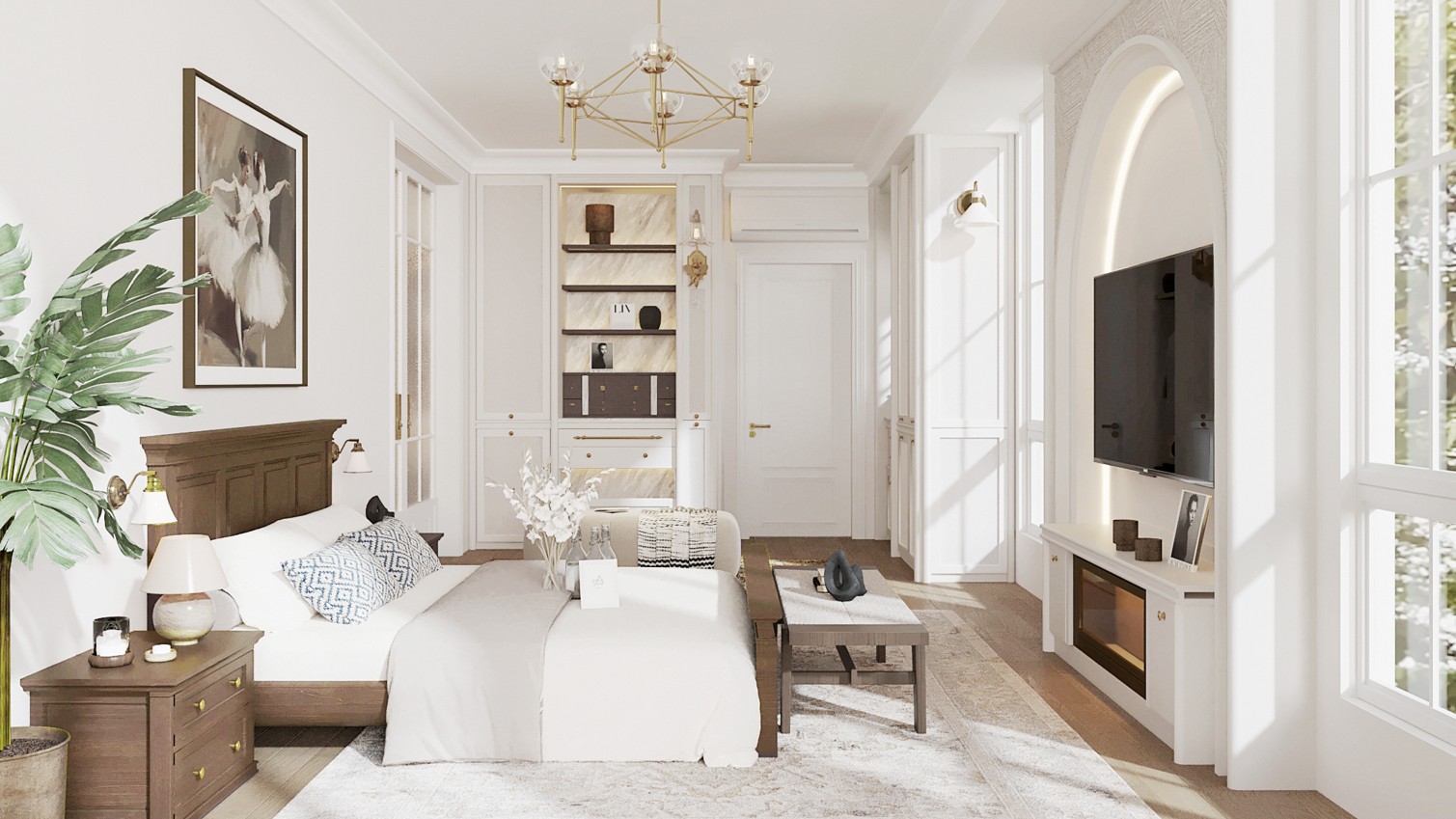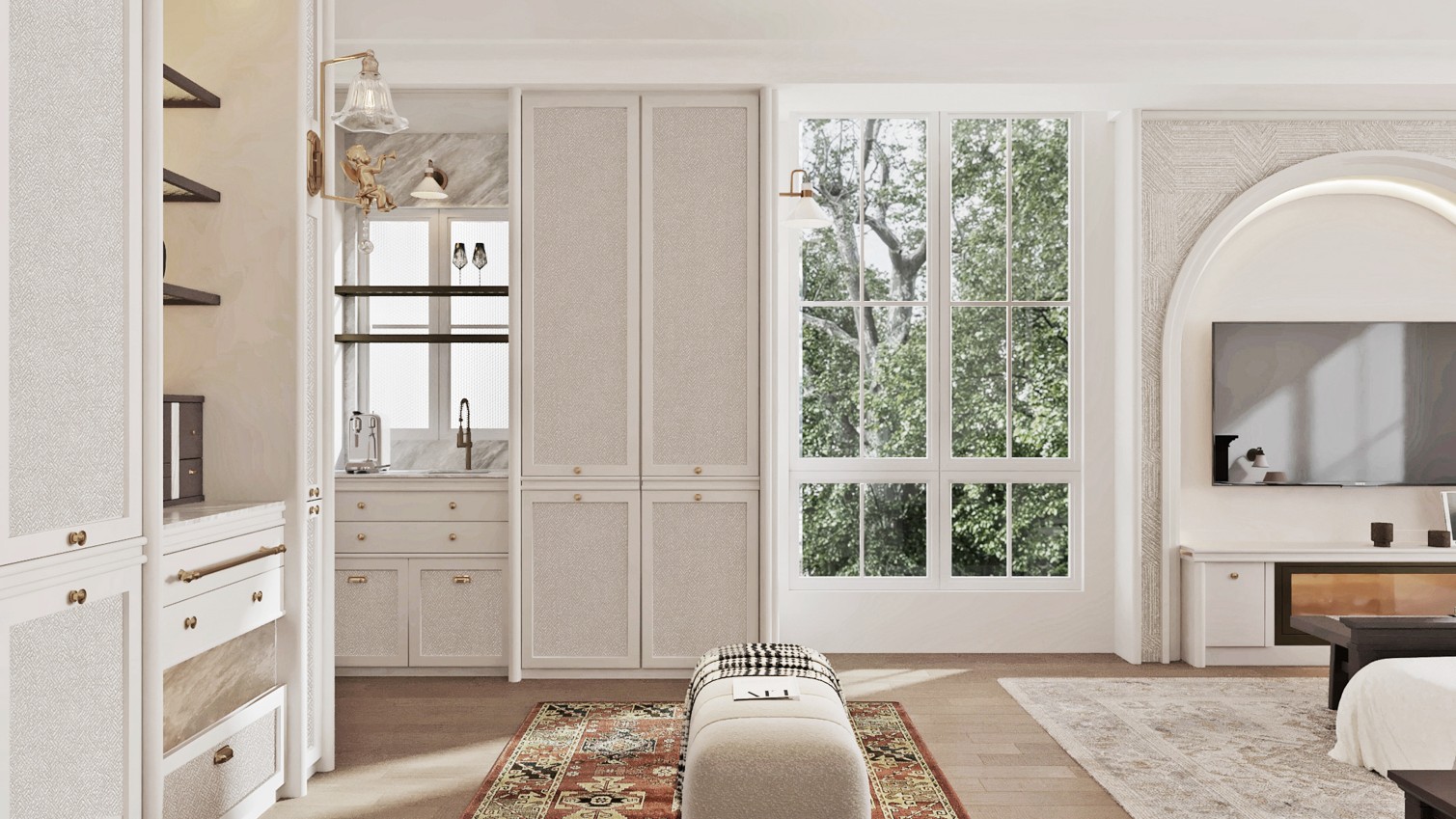 He had always dreamed of giving her a place where sunlight would pour in each morning, where the air felt calm yet full of possibility. This home, with its graceful arches and soft palette of ivory, warm beige, and wood, is his gift to her—a space that wraps her in quiet elegance while keeping the world just beyond the windows. Every corner, from the inviting living room to the serene bedroom lounge, flows effortlessly, so she can welcome friends, host family dinners, or simply retreat into her own peace.