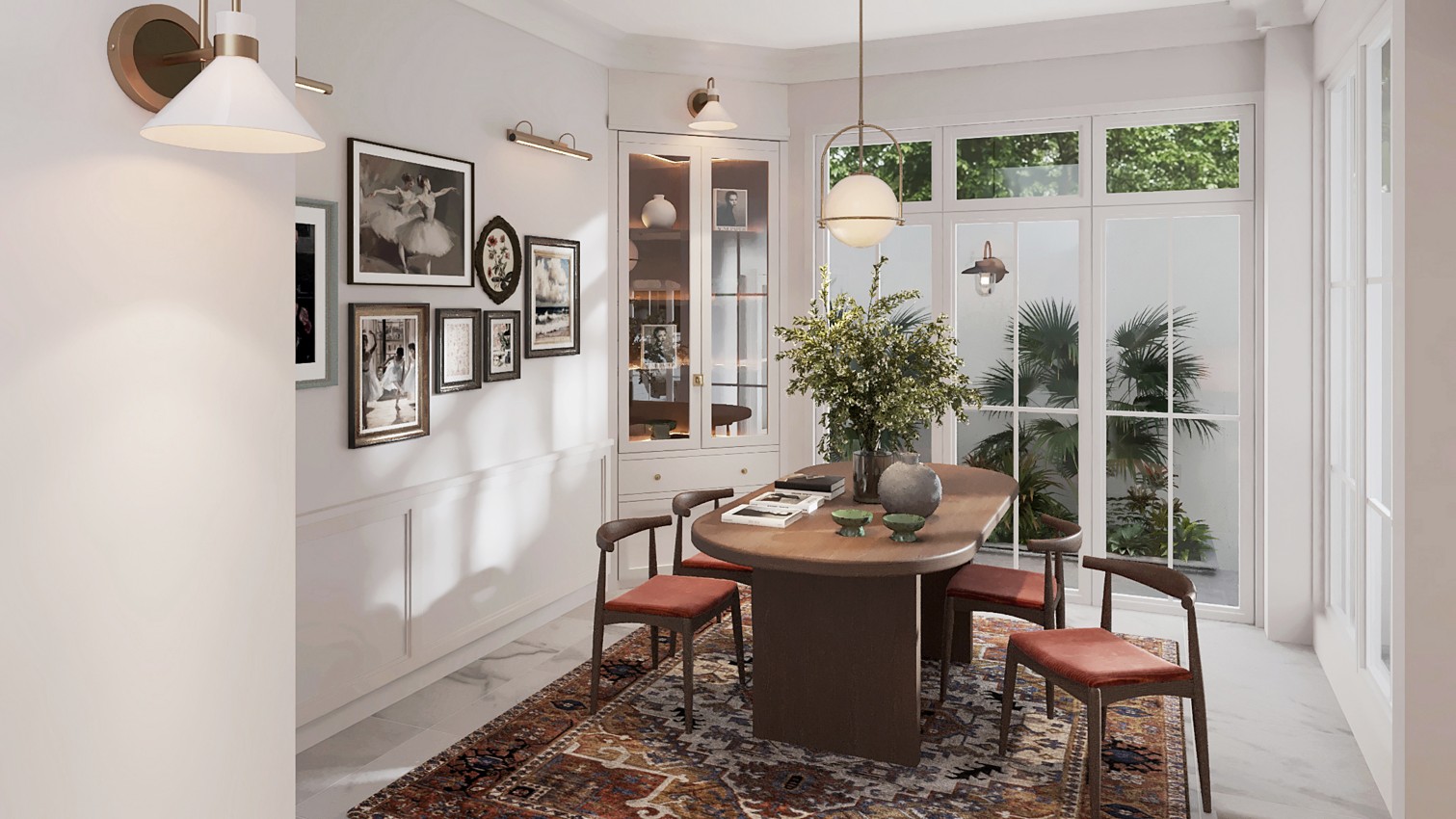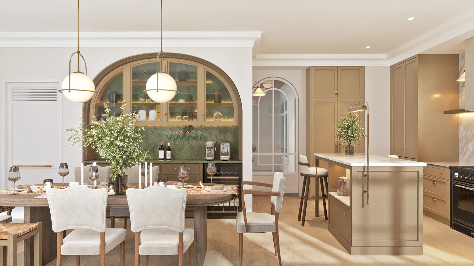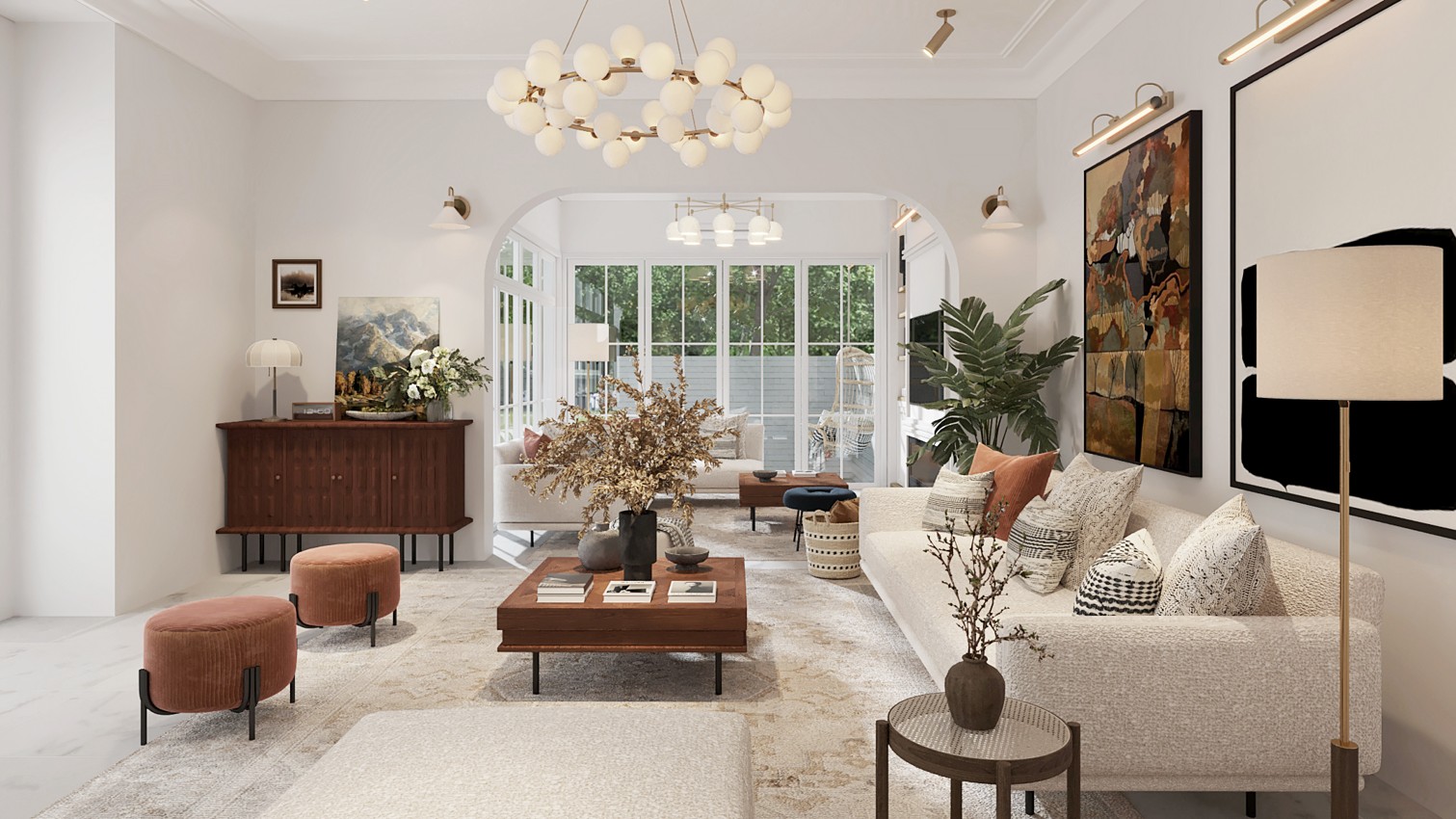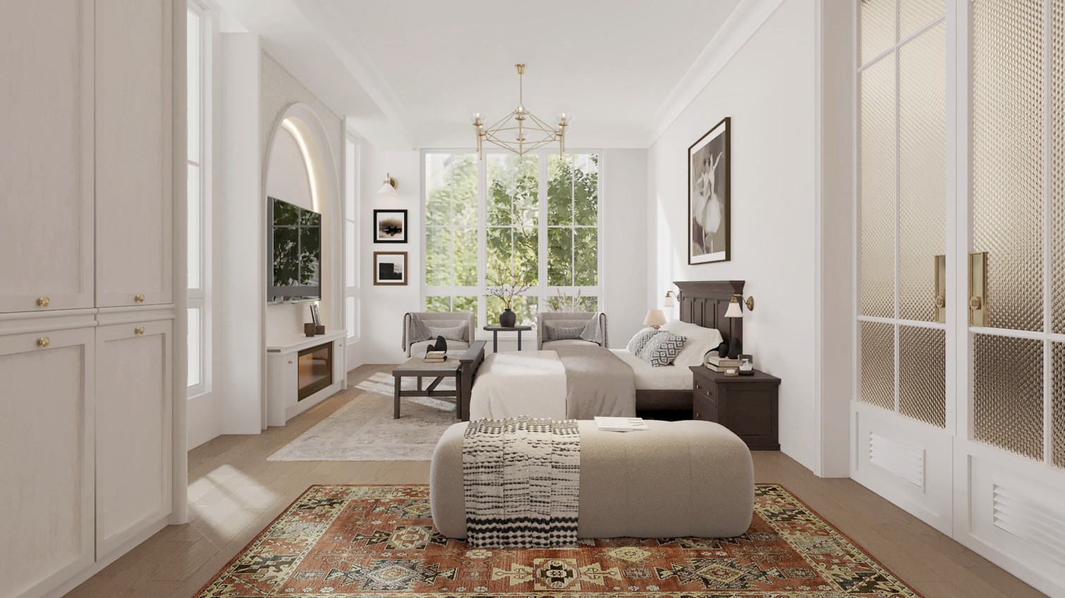 He had always dreamed of giving her a place where sunlight would pour in each morning, where the air felt calm yet full of possibility. This home, with its graceful arches and soft palette of ivory, warm beige, and wood, is his gift to her—a space that wraps her in quiet elegance while keeping the world just beyond the windows. Every corner, from the inviting living room to the serene bedroom lounge, flows effortlessly, so she can welcome friends, host family dinners, or simply retreat into her own peace.