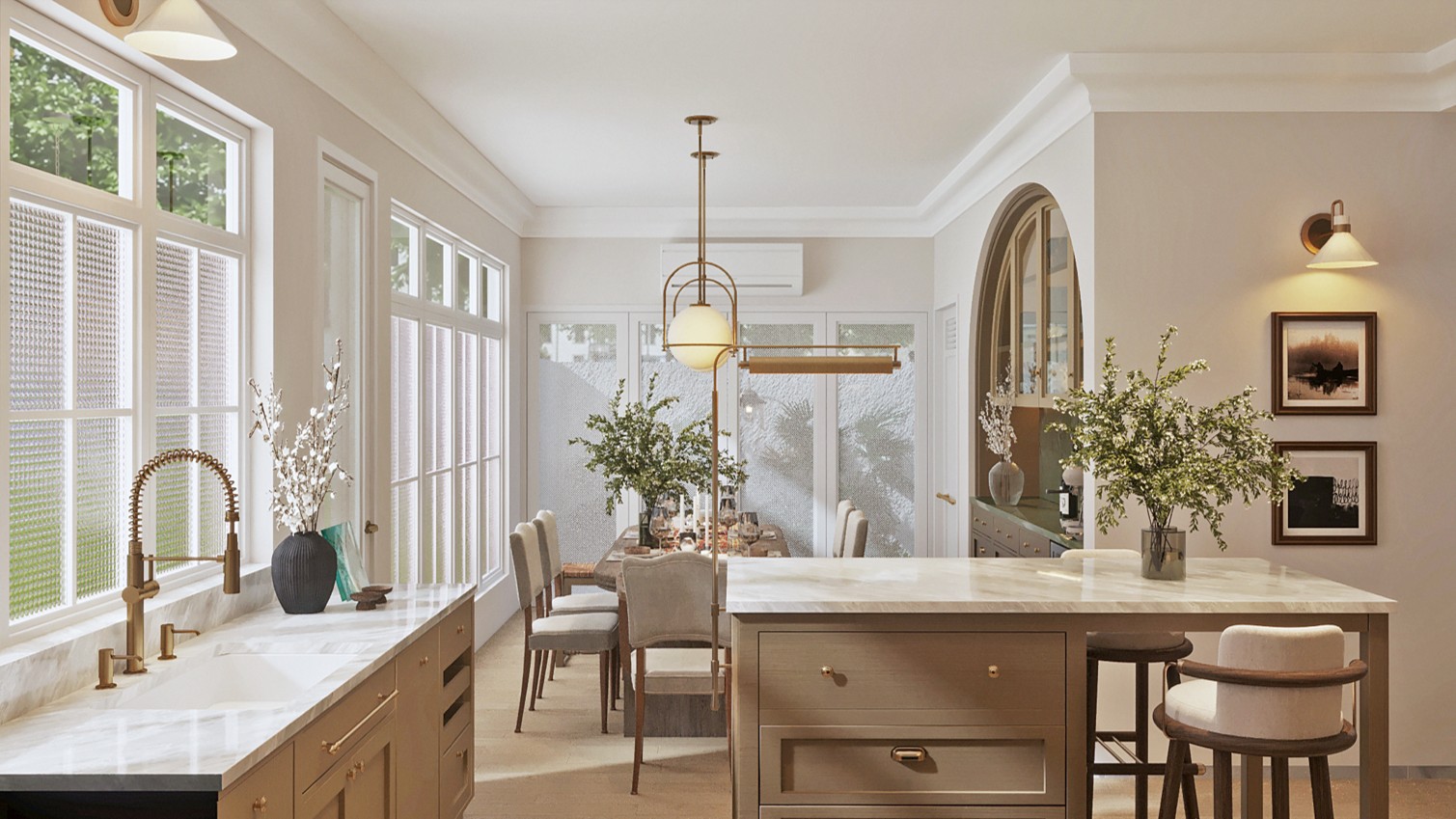 Each detail was chosen with care: the warmth of brushed brass, the comfort of tactile fabrics, the timeless beauty of marble, and the cleverness of hidden storage. Statement lighting crowns the rooms, casting a glow that feels like home. It’s not just a house—it’s his way of saying, I want you to live beautifully, every single day. A place for her to grow, to dream, and to always remember that she is deeply loved.
