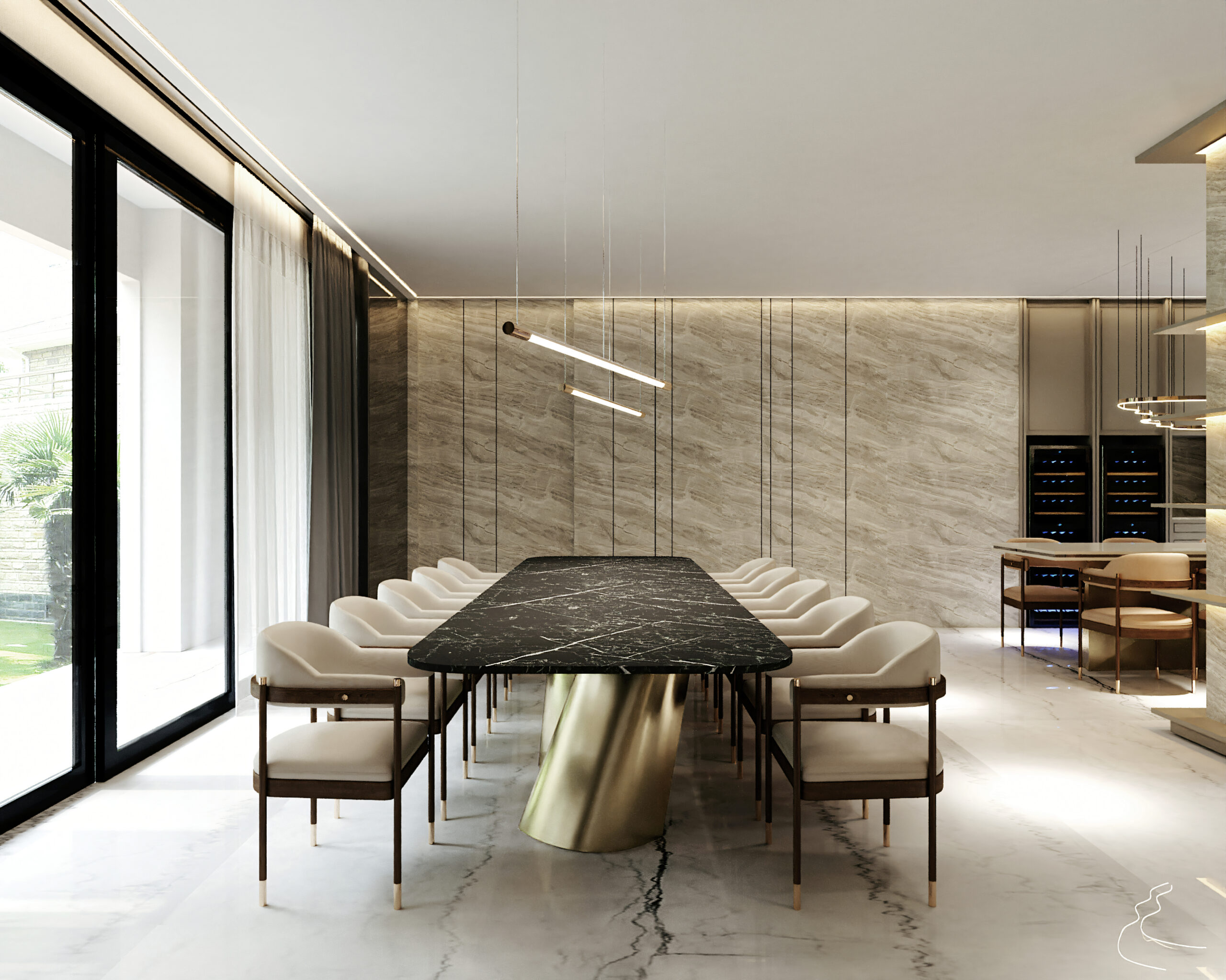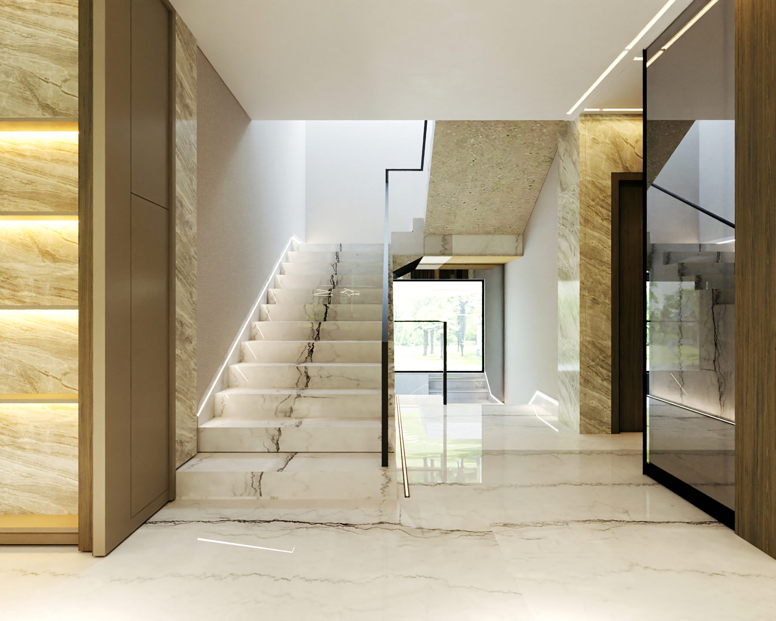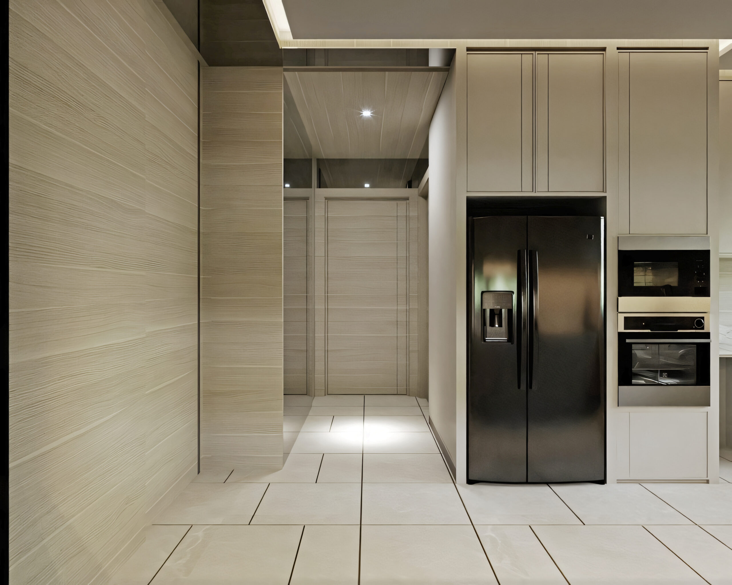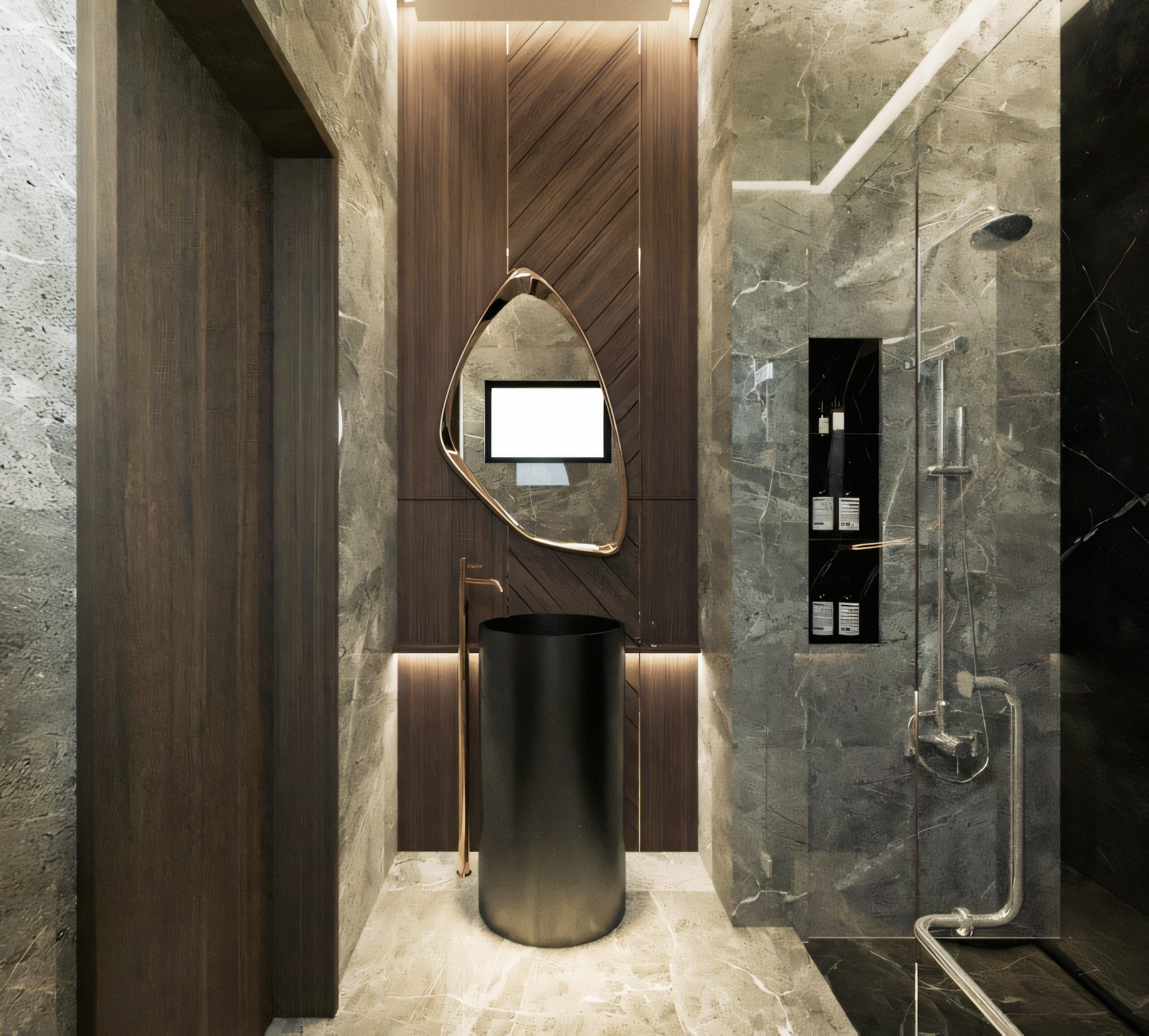 He wanted a space that reflected not only who he was—but who he was becoming. A place that spoke in quiet confidence, where strength met stillness, and every shadow had its own kind of beauty. This home, with its bold contrasts and deep, grounding tones, is a reflection of his journey—refined, steady, and full of intent. Dark stone walls catch the golden light that spills from custom pendants, softening the edges of modern lines. Each surface carries a story: the grain of warm oak, the cool touch of marble, the subtle shimmer of brushed metal. The rhythm of light and texture creates a calm intensity—luxurious yet deeply personal. Every room opens to another moment of balance—the open living hall that welcomes laughter, the study that holds his focus, the bedroom that asks for rest. It’s a home built not just for living, but for becoming—a place that reminds him every day: strength can be gentle, and beauty can be quiet.