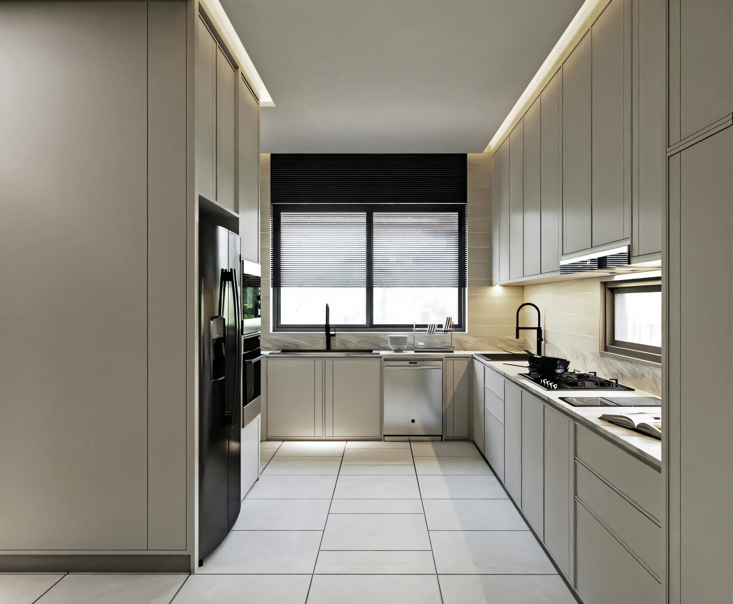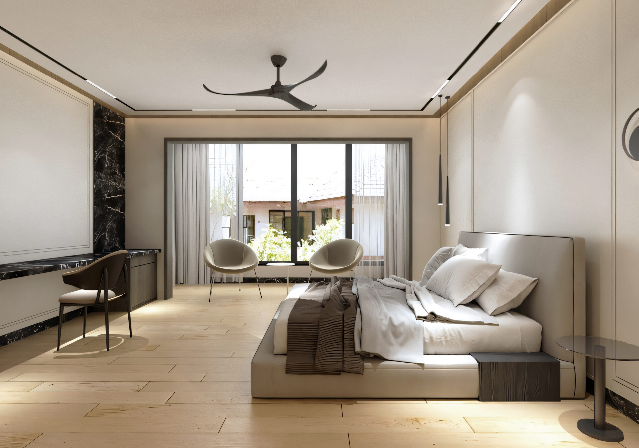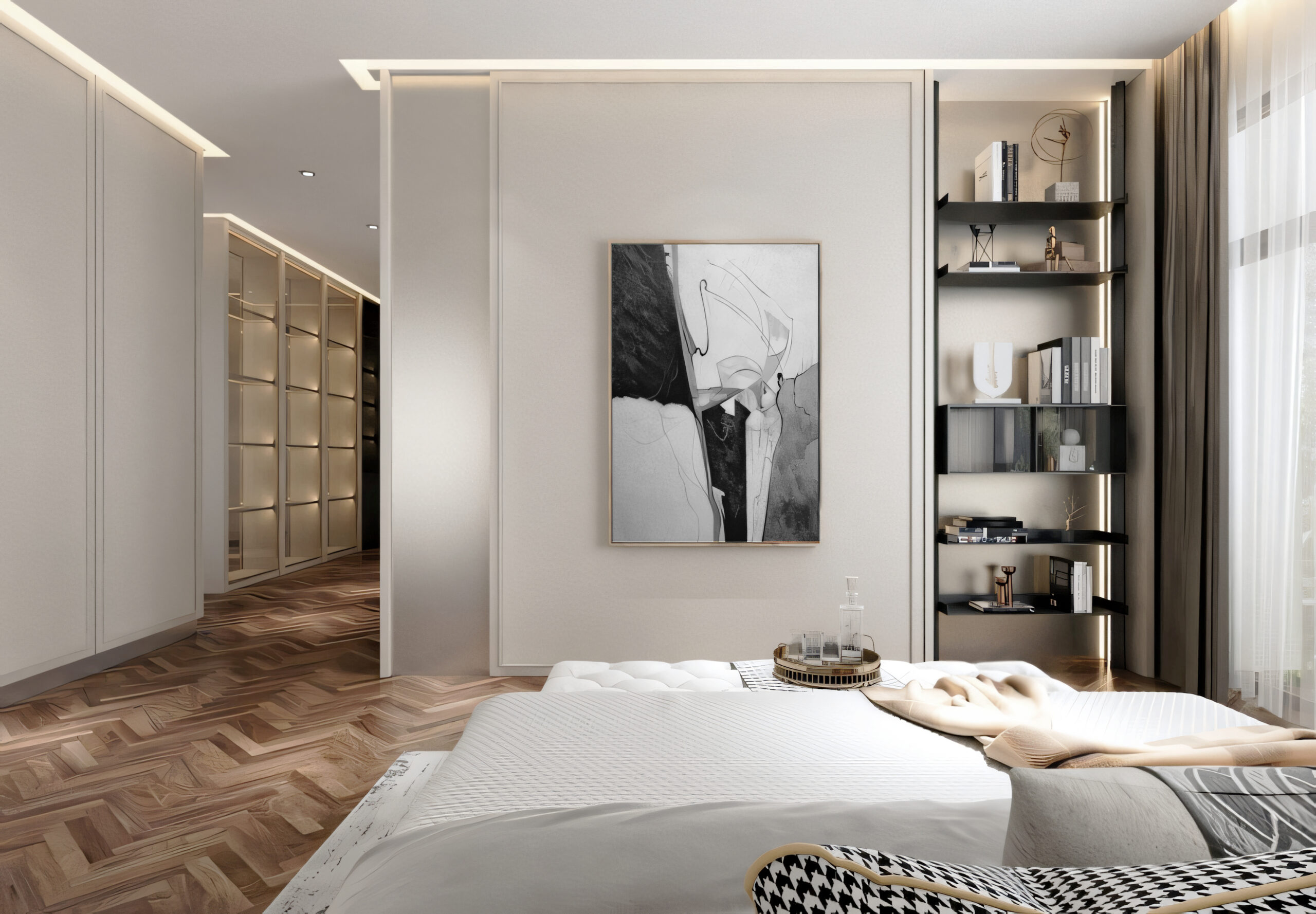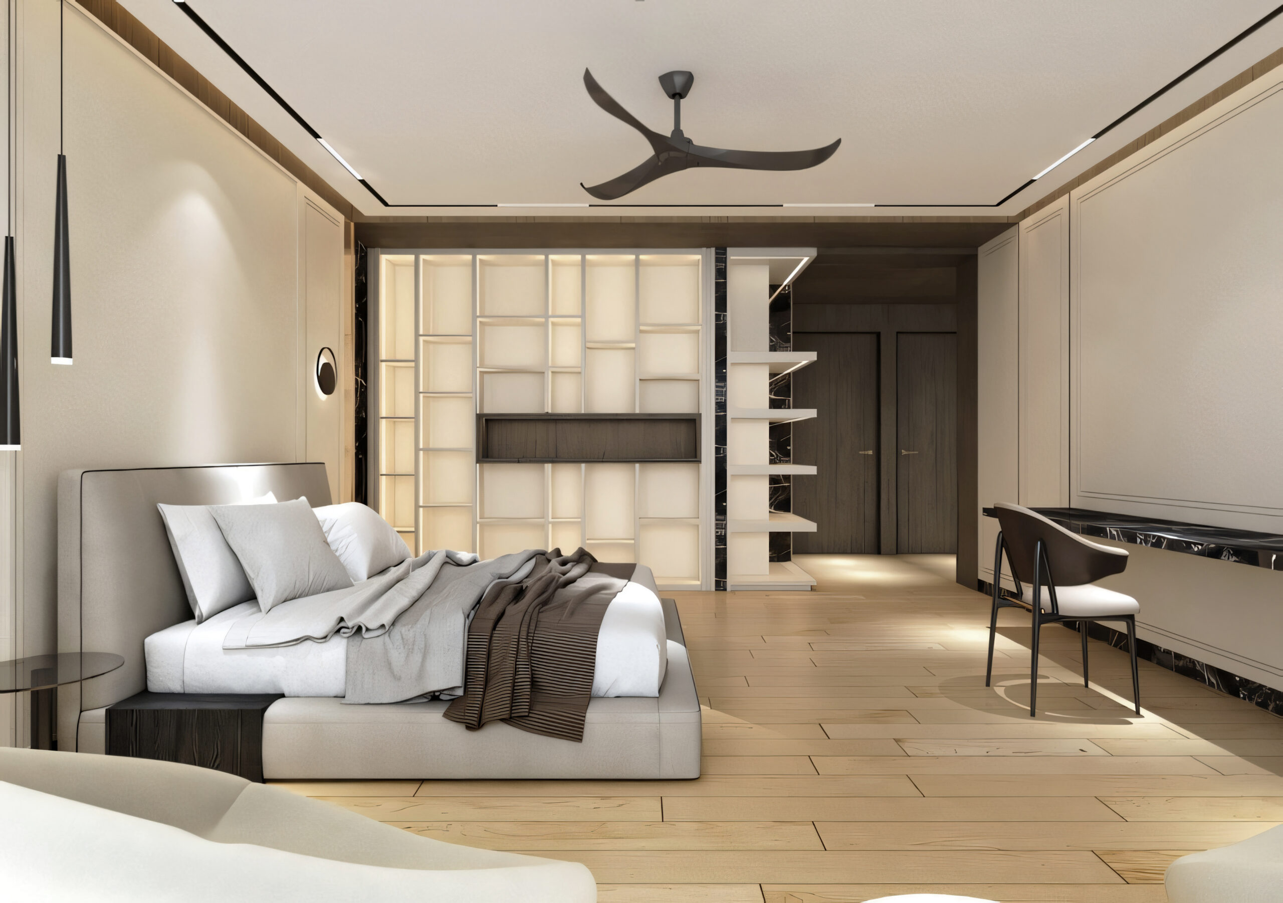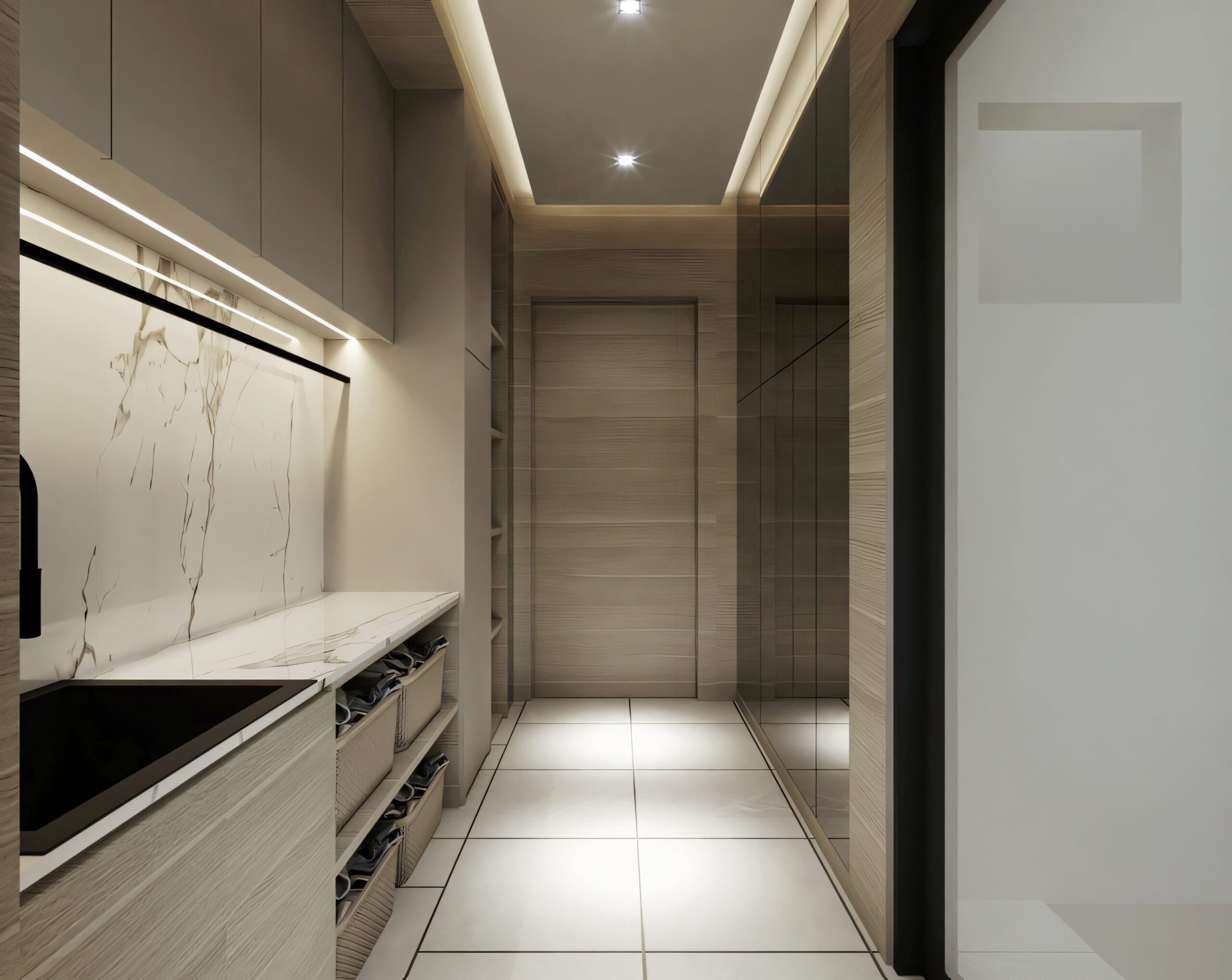 He wanted a space that reflected not only who he was—but who he was becoming. A place that spoke in quiet confidence, where strength met stillness, and every shadow had its own kind of beauty. This home, with its bold contrasts and deep, grounding tones, is a reflection of his journey—refined, steady, and full of intent. Dark stone walls catch the golden light that spills from custom pendants, softening the edges of modern lines. Each surface carries a story: the grain of warm oak, the cool touch of marble, the subtle shimmer of brushed metal. The rhythm of light and texture creates a calm intensity—luxurious yet deeply personal. Every room opens to another moment of balance—the open living hall that welcomes laughter, the study that holds his focus, the bedroom that asks for rest. It’s a home built not just for living, but for becoming—a place that reminds him every day: strength can be gentle, and beauty can be quiet.